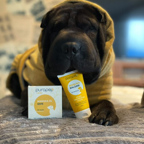 Wir durften die neue Manuka-Öl Seife von Purapep testen! Anfangs etwas skeptisch – da ich kein Fan von festen Seifen bin. Da Buddy ein paar schuppige Stellen an den Vorderbeinen hatte (allergiebedingt), er viel daran kratzte und leckte und auch wetterbedingt trockene/rissige Pfötchen bekam, kam die Gelegenheit, die Seife zu testen, recht flott. Schon beim Einseifen der Beine merkte ich, dass die Seife sich sehr einfach verteilen ließ. Nach dem Abwaschen viel mir auf, dass Buddy kaum bis gar nicht mehr an den Stellen leckte und ein paar Tage später, war alles abgeheilt. Und auch ich merkte, dass die Seife auch auf meine Haut eine beruhigende Wirkung hat: da ich tagsüber viel am Händewaschen war, waren meine Hände trocken und rissig.